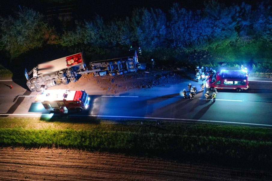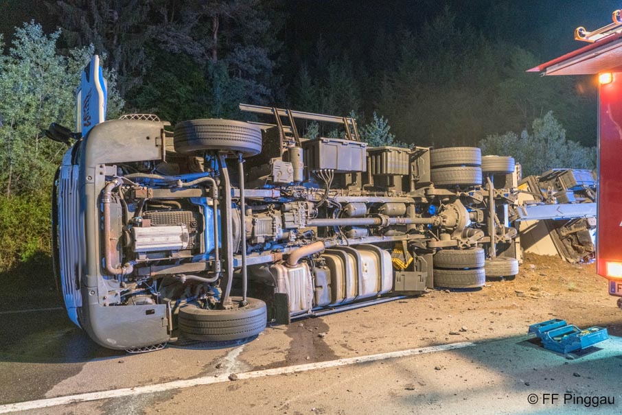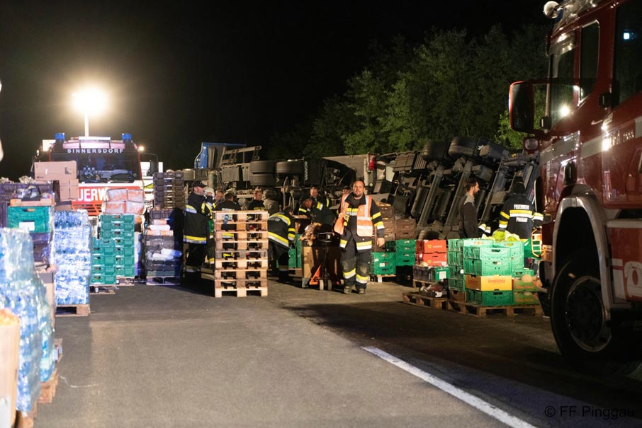 Nach Aussagen des Lenkers wollte er einem Reh ausweichen und geriet dadurch auf das Bankett, wodurch der LKW-Zug umstürzte und auf der Fahrbahn bzw. im Straßengraben zu liegen kam. Aufgrund der Schwere des Unfalls wurde auch die FF Pinggau alarmiert.