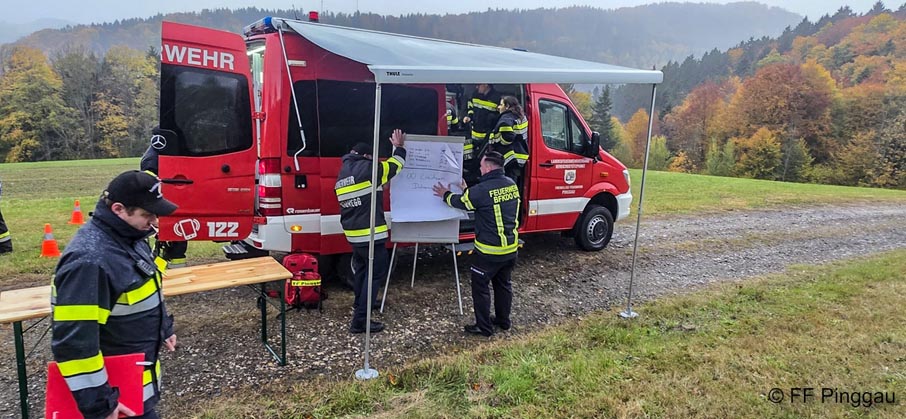 Die Feuerwehr Pinggau nahm mit dem Einsatzleitfahrzeug und dem TLF 4000 mit insgesamt 12 Einsatzkräften an dieser Übung teil.